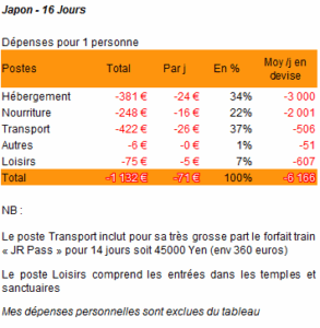 En règle général, les transports en commun ne sont pas bon marché. Avant de prendre le métro ou le bus, vaut mieux acheter les Pass à la journée qui sont souvent amortis au bout de 3 ou 4 trajets. Quant aux trajets plus longs, je recommande d’étudier avec attention les forfaits « JR Pass« . Pour ma part, j’ai acheté celui de 14 jours qui a été largement amorti avec l’itinéraire que j’ai listé plus haut.